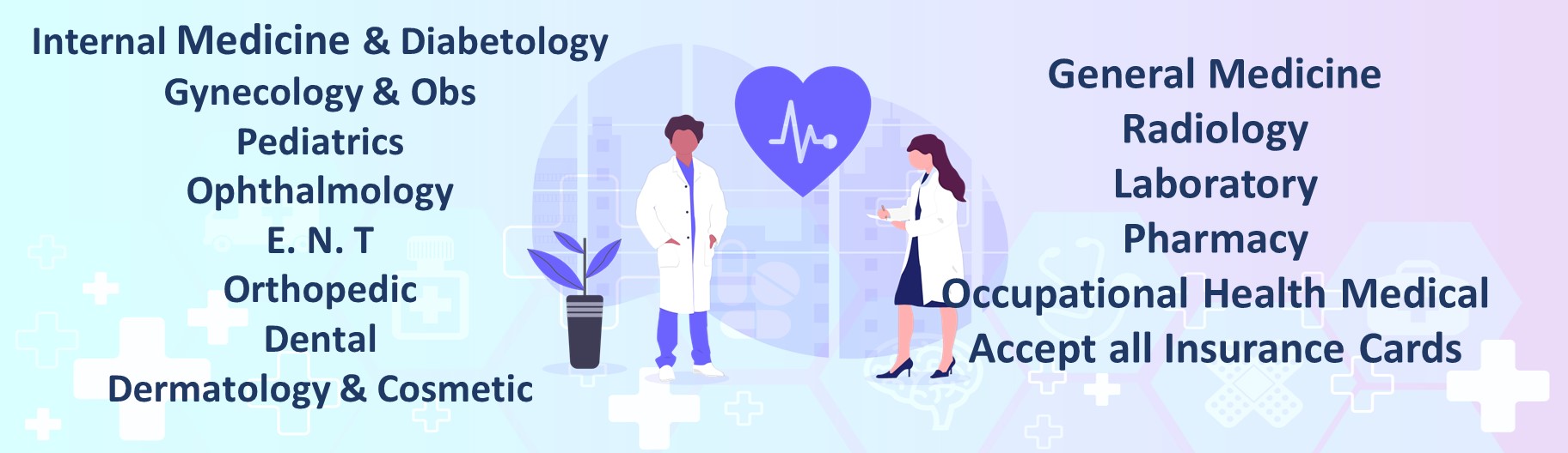 Diabetes mellitus Hypertension Hyperlipidemia Migraine Obesity Respiratory tract infections Urinary tract infections Gastrointestinal disorders (GI) Irritable Bowel Syndrome (IBS)Services provided at our General Medicine department: